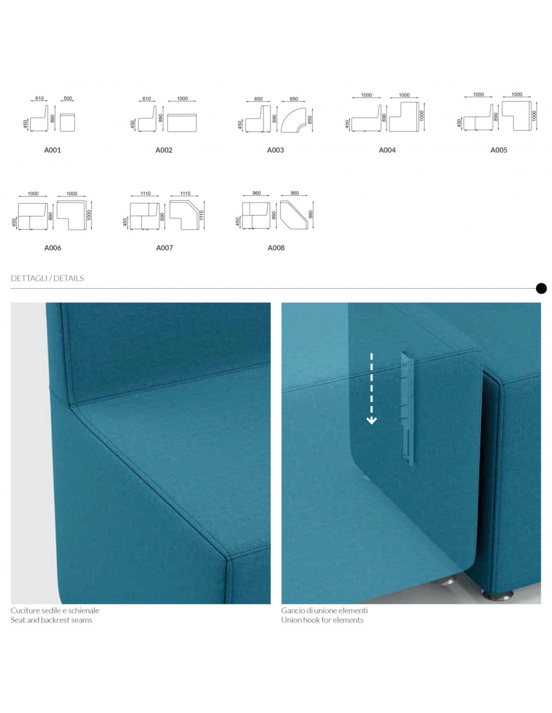 AGREE A0004 Divano Angolo retto 90° lato SX senza schienale componibile ecopelle D2 SEIPO