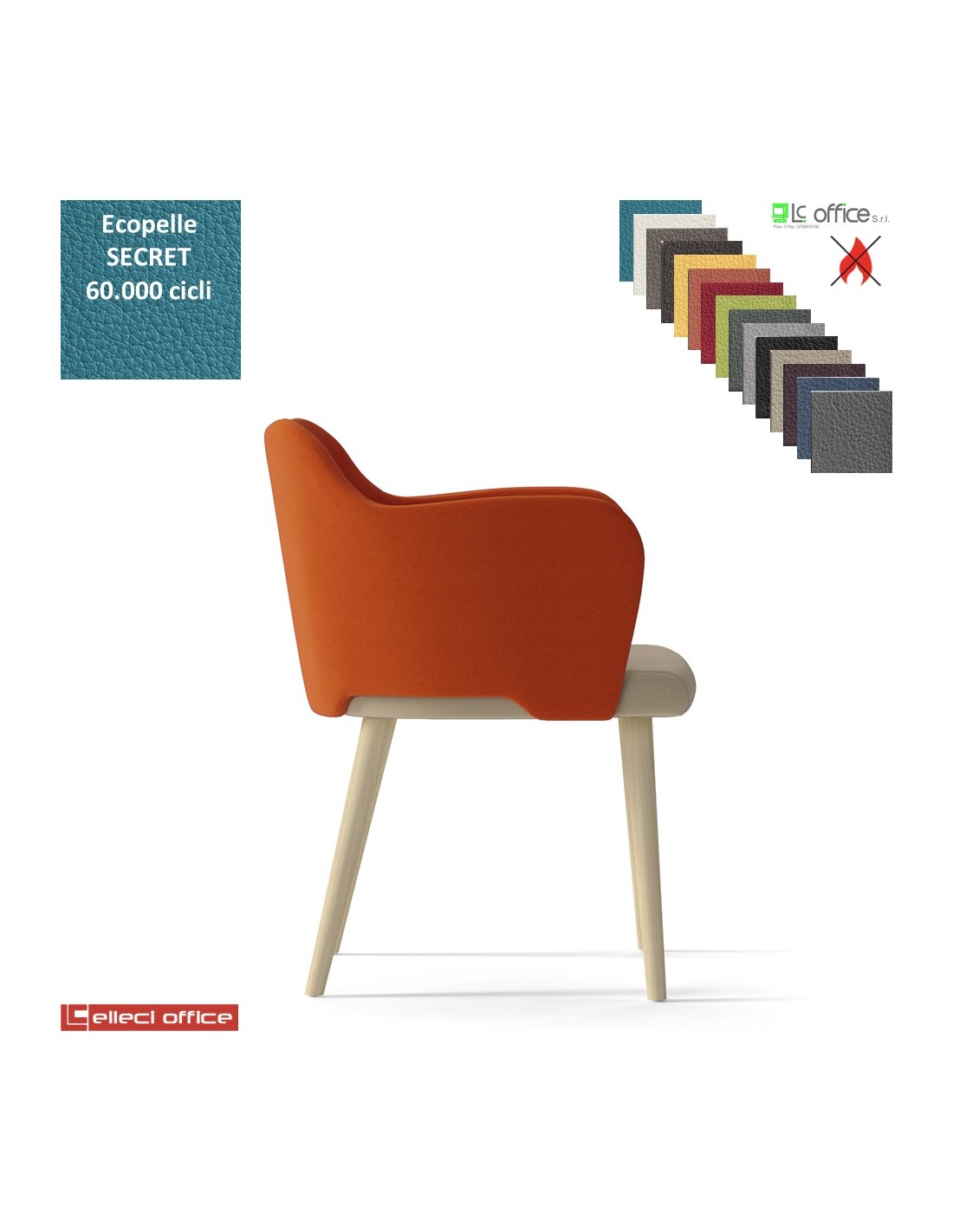 Blitz Poltroncina con base a 4 gambe in legno frassino verniciato naturale rivestimento ecopelle SECRET class 1 IM
