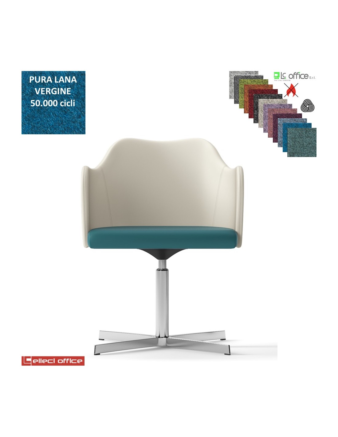 Blitz Poltroncina girevole base 4 razze in alluminio rivestimento in Lana vergine Class 1 IM