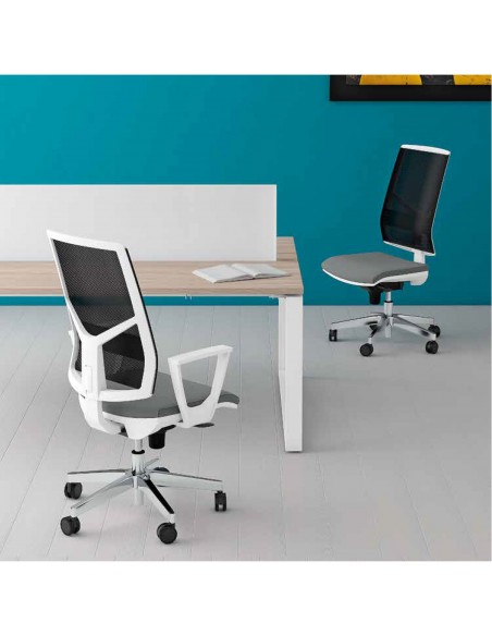BOSS BS0047 poltrona BIANCA direzionale schienale rete con braccioli fissi movimenti F ECOPELLE D2 SEIPO