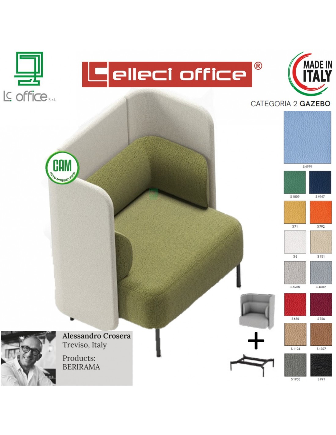 BERIRAMA poltrona con schienale e braccioli corti Parete posteriore H100 rivestimenti ecopelle GAZEBO Class 1 IM Elleci Office