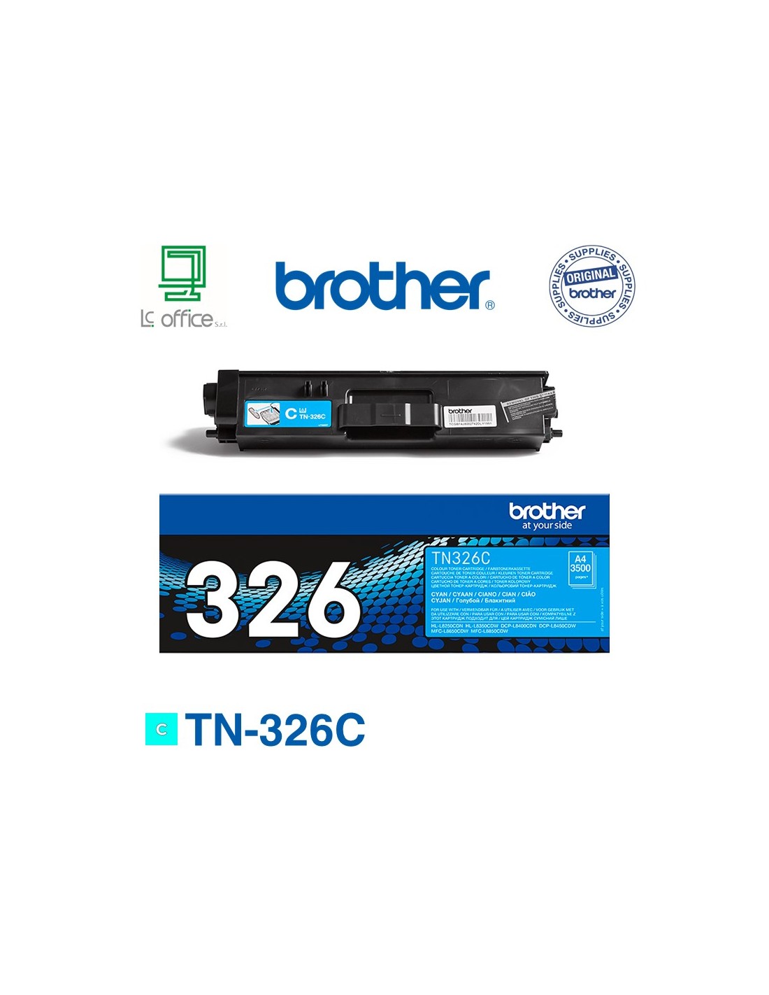 Il toner ciano ad alta capacità TN-326C è utilizzabile con DCP-L8400CDN, DCP-L8450CDW, HL-L8250CDN, HL-L8350CDW, MFC-L8650CDW e MFC-L8850CDW, con una capacità massima di 3.500 pagine.