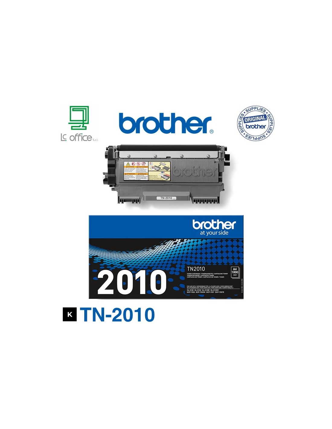 Il toner originale Brother TN-2010 è utilizzabile con HL-2130, HL-2132, HL-2135W, DCP-7055, DCP-7055W, DCP-7057 con una capacità di circa 1.000 pagine.