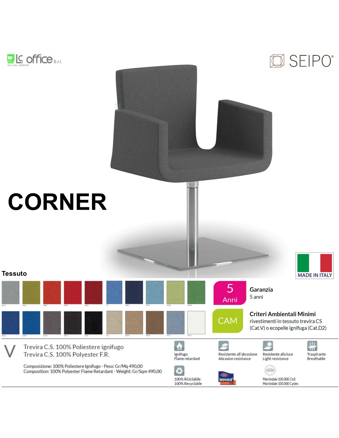 CORNER CR0012 poltrona auto allineante imbottita base zavorrata quadrata cromata tessuto V