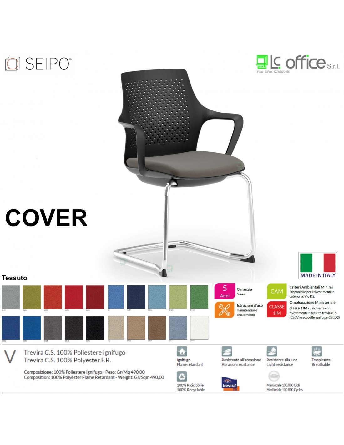 COVER CV0009 Poltrona visitatore base a slitta cromata braccioli fissi sedile rivestito schienale in nylon nero Black Version Seipo Tessuto V CLASS 1IM