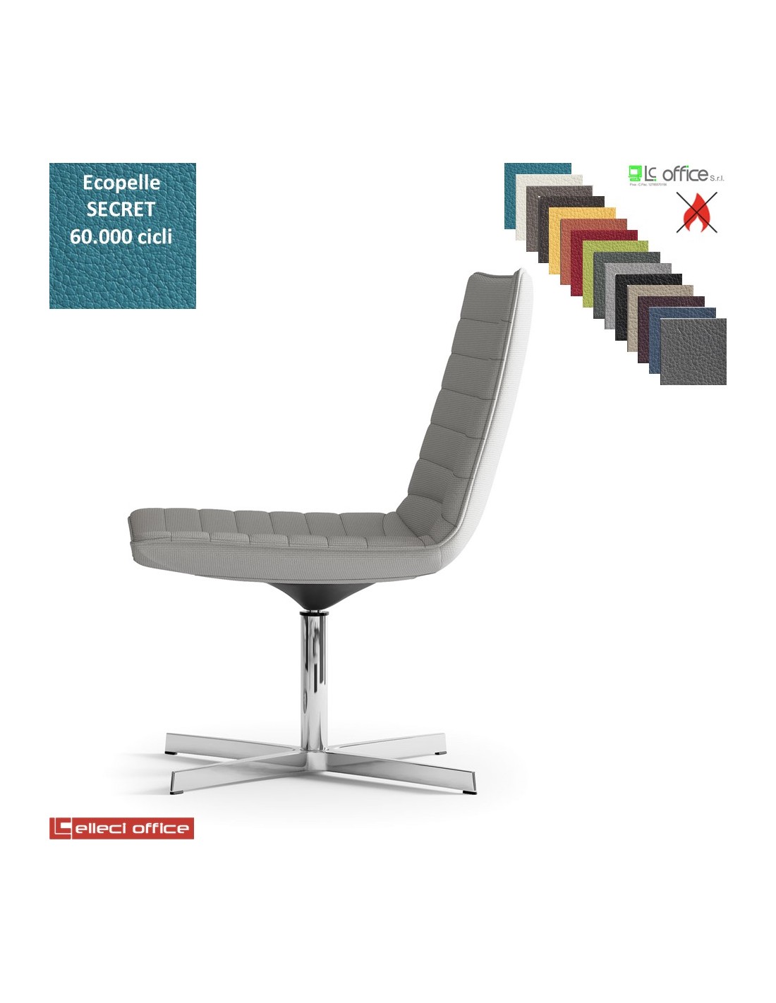 MONET Poltrona girevole base a 4 razze in alluminio rivestimenti ecopelle SECRET class 1 IM