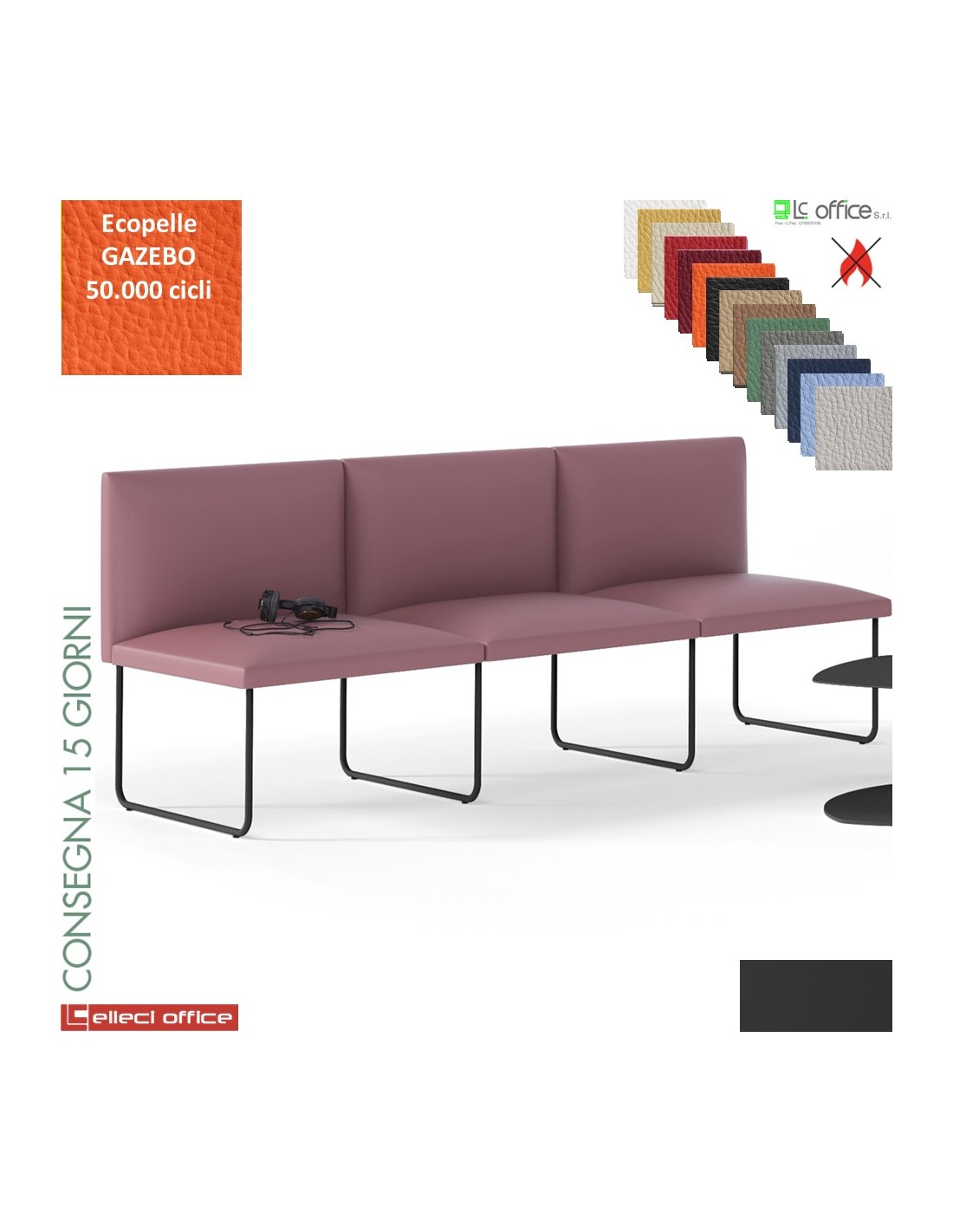 DOMINO poltrone attesa tre posti COMPONIBILE rivestimento ecopelle GAZEBO class 1IM