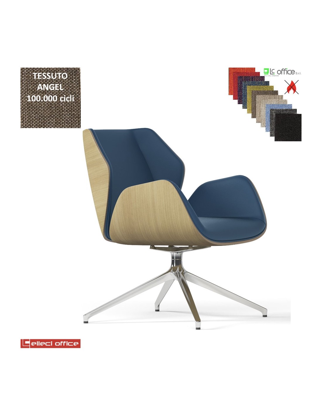Haiku Wood Poltrona semi-direzionale girevole base alluminio piramidale a 4 gambe tessuto Angel class 1 IM