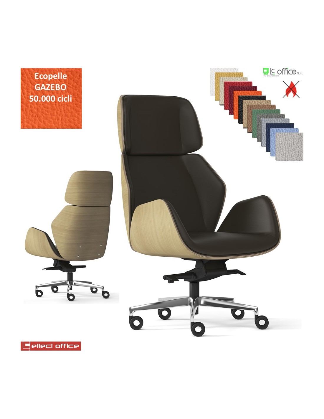 Haiku Wood Poltrona direzionale oscillante fulcro avanzato multiblock regolazione laterale base alluminio ecopelle GAZEBO Class 1IM