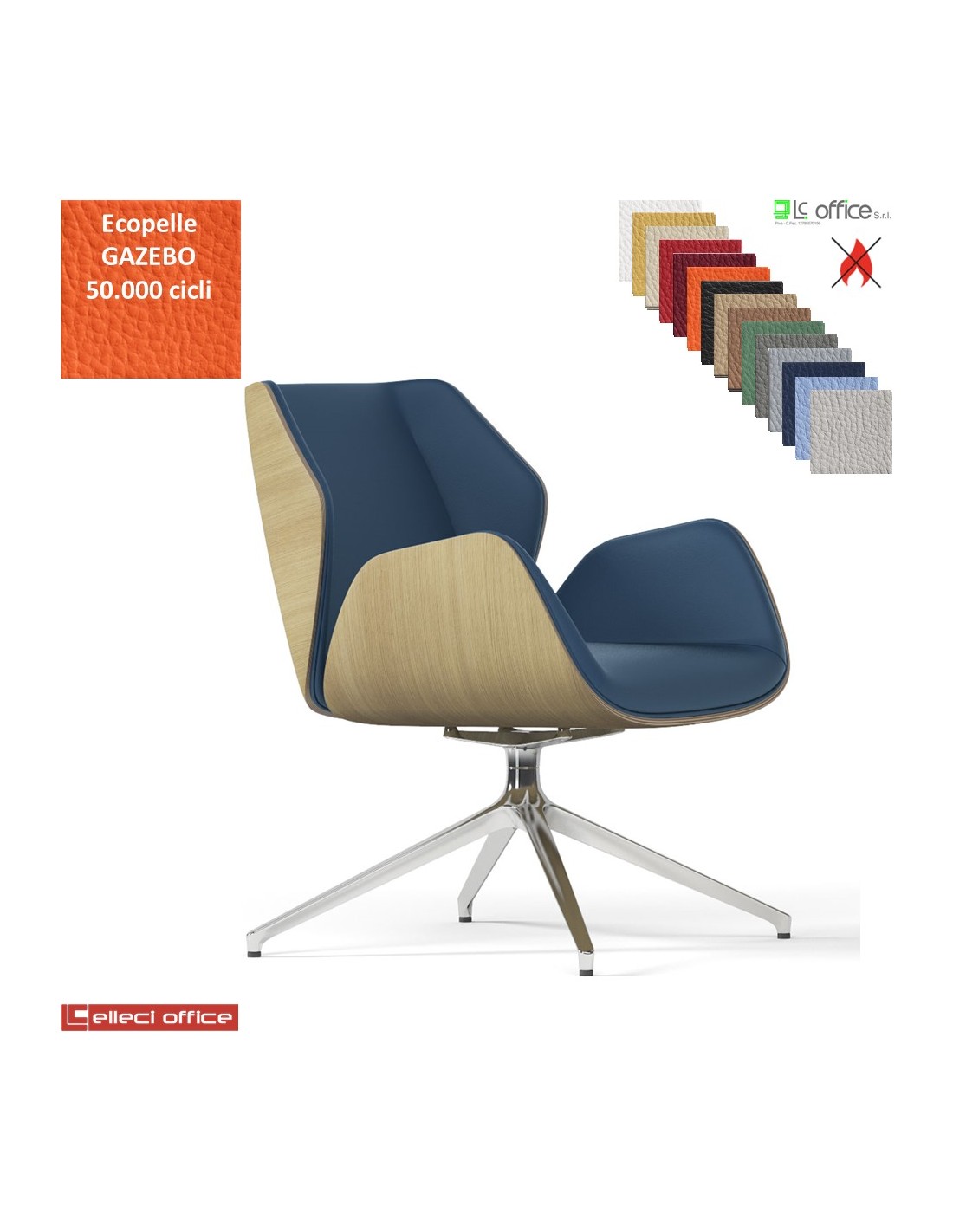 Haiku Wood Poltrona semi-direzionale girevole base alluminio piramidale a 4 gambe ecopelle GAZEBO Class 1IM