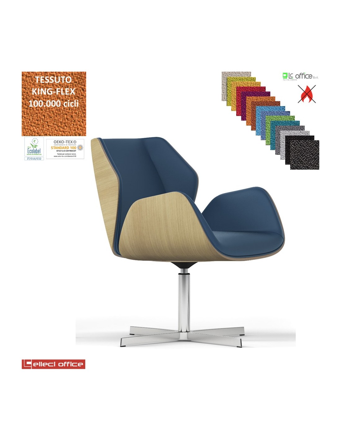Haiku Wood Poltrona semi-direzionale girevole base 4 razze alluminio TESSUTO KING FLEX class 1IM