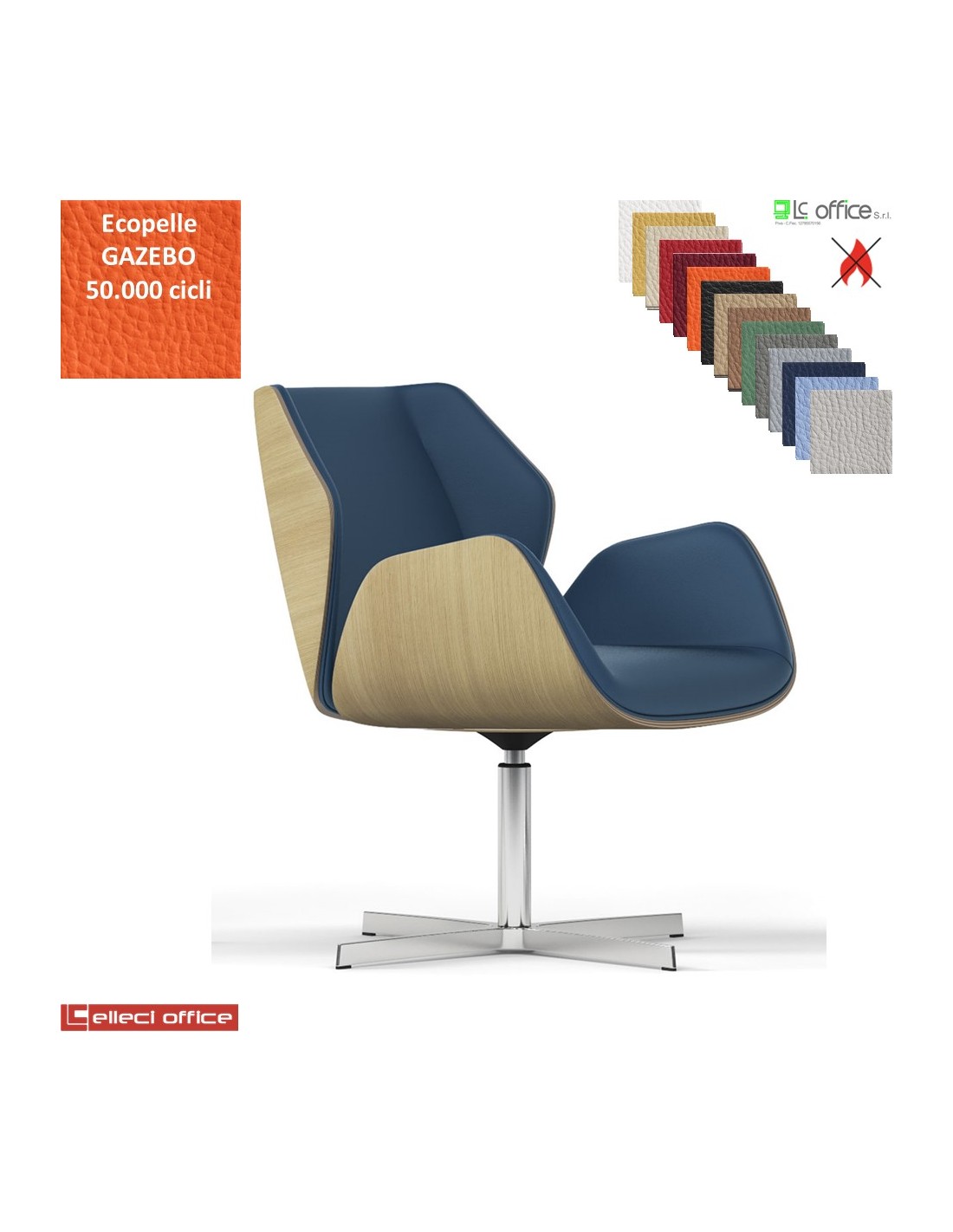 Haiku Wood Poltrona semi-direzionale girevole, base 4 razze alluminio ecopelle GAZEBO Class 1IM