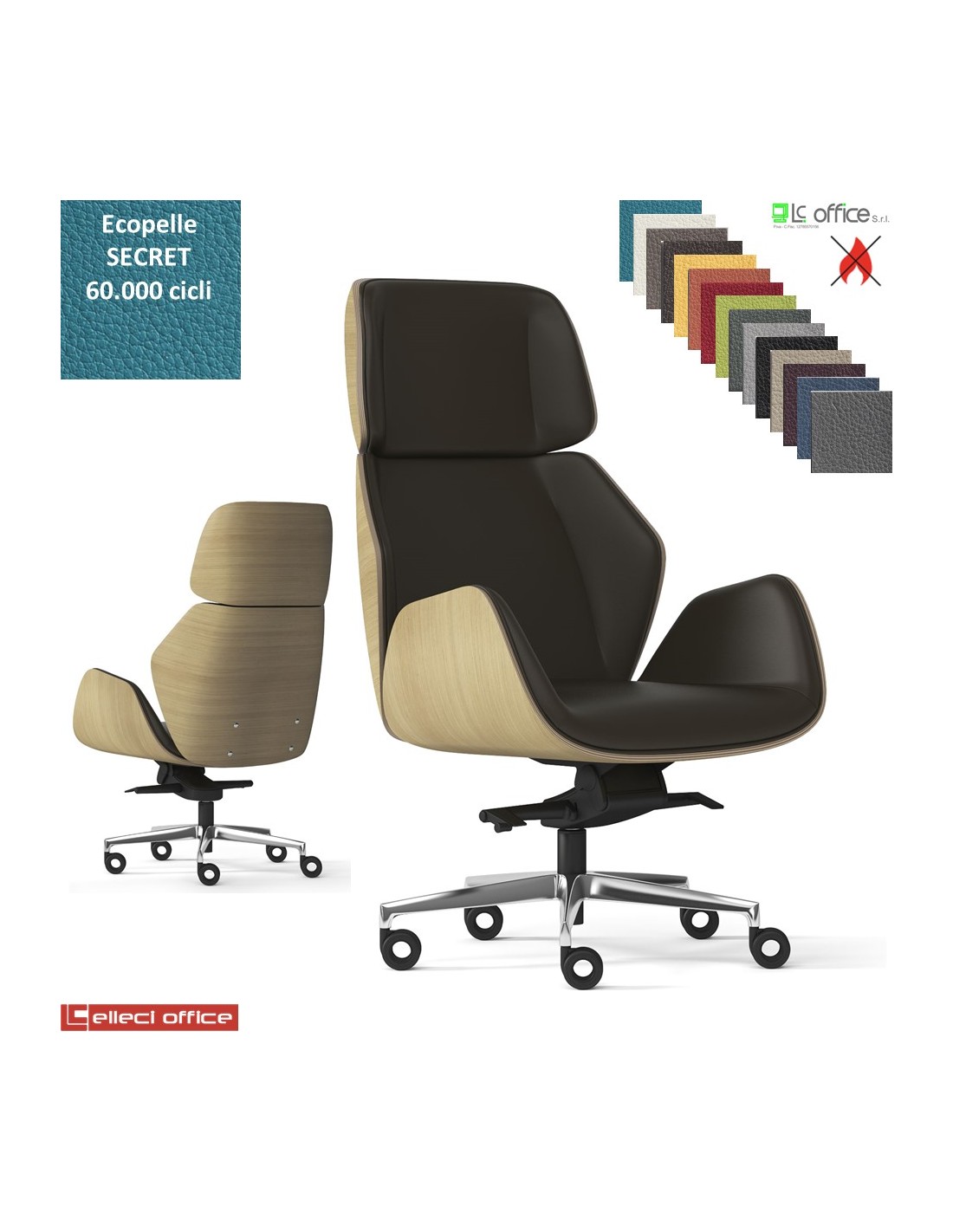 Haiku Wood Poltrona direzionale con oscillante fulcro avanzato multiblock regolazione lat. base alluminio ecopelle SECRET class 1 IM