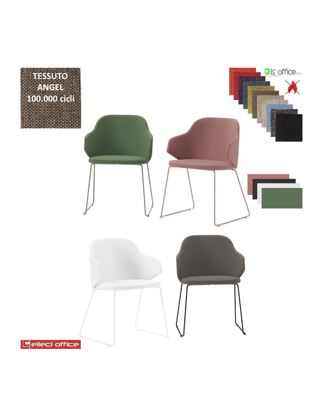 HOST NEW Poltroncina attesa Slitta acciaio verniciata nei colori antracite bianco cipria verde salvia tessuto Angel class 1 IM