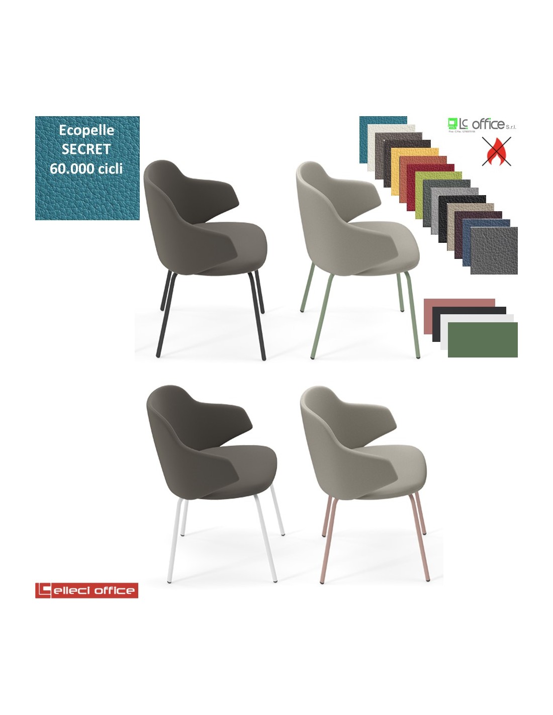 HOST NEW Poltroncina attesa 4 gambe acciaio verniciata nei colori antracite, bianco, cipria, verde salvia, RIVESTIMENTI in ecopelle SECRET class 1 IM