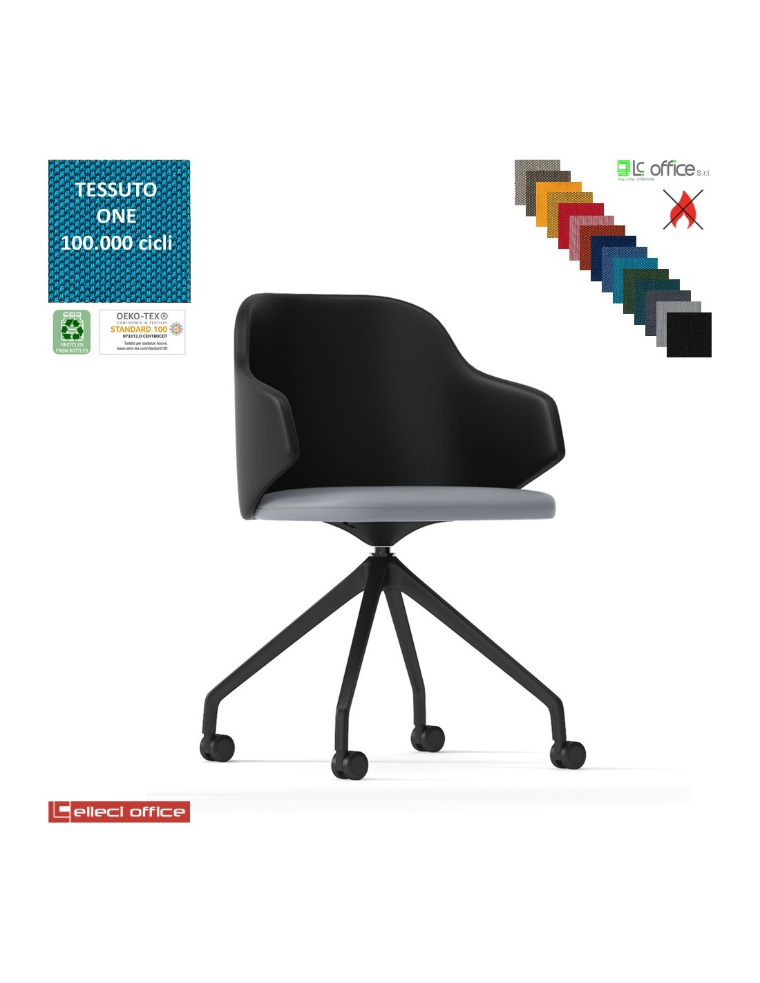 HOST Poltroncina girevole base nylon NERA piramidale 4 gambe con ruote rivestimento in tessuto ONE class 1 IM
