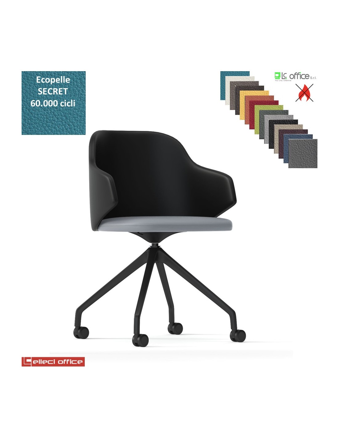 HOST Poltroncina interlocutore girevole base nylon antracite piramidale 4 gambe ruote rivestimento ecopelle SECRET class 1 IM