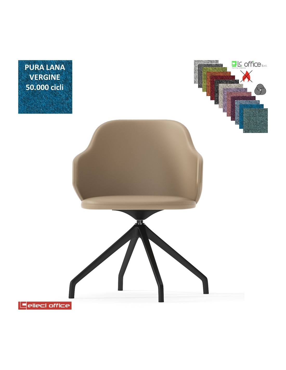 HOST Poltroncina interlocutore girevole base nylon antracite piramidale a 4 gambe rivestimenti in Lana vergine Class 1 IM