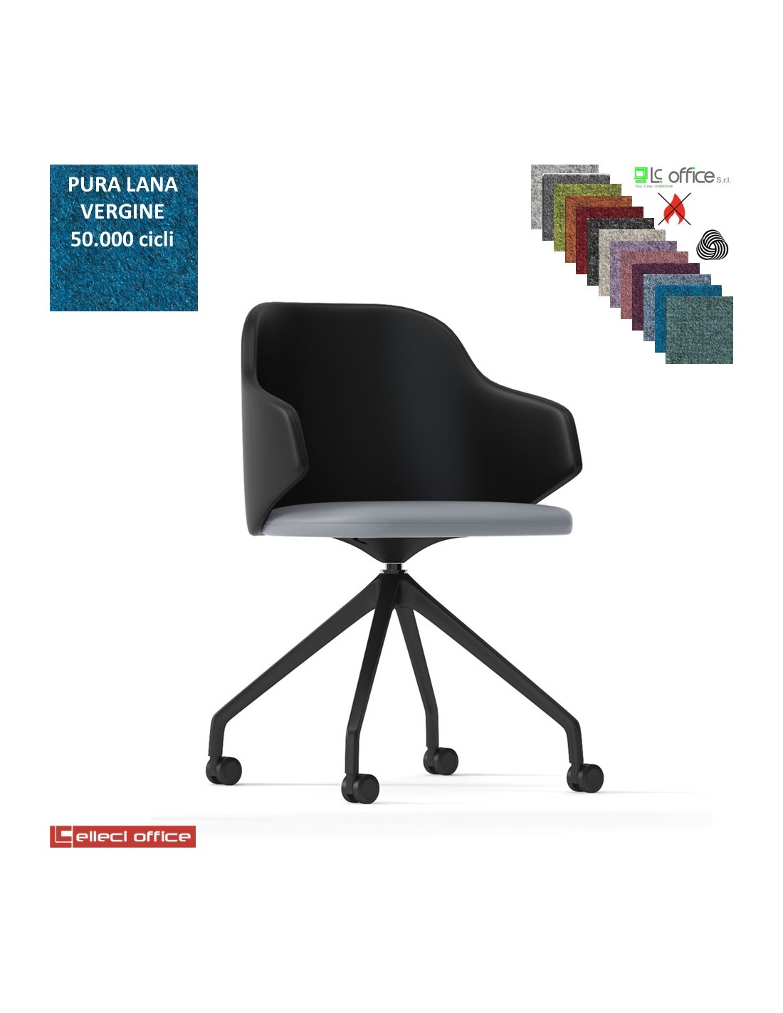 HOST Poltroncina interlocutore girevole base nylon antracite piramidale a 4 gambe ruote rivestimenti in Lana vergine Class 1 IM