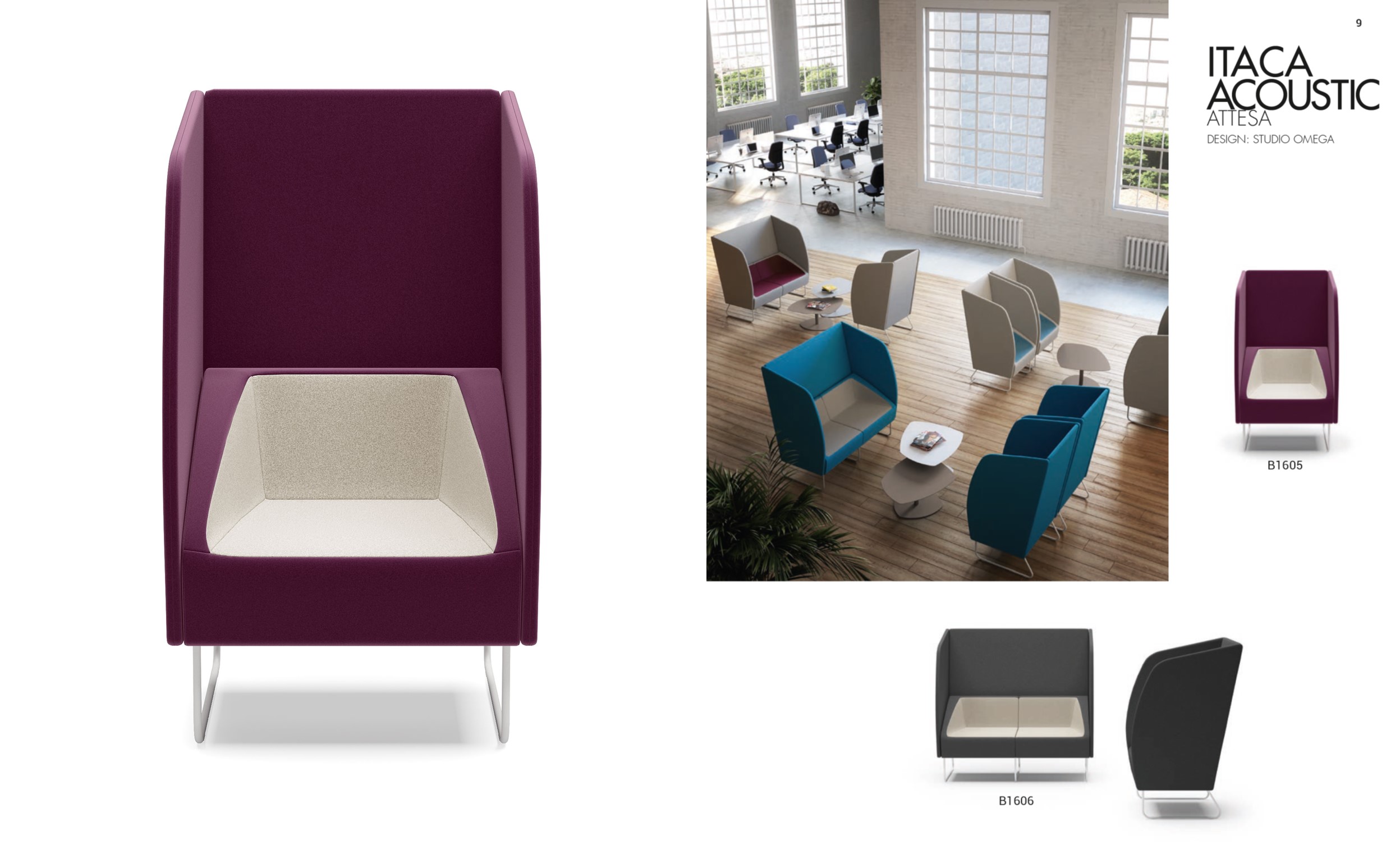ITACA ACOUSTIC Poltrona 2 posticon pareti acoustic gambe verniciate bianche rivestimento ecopelle SECRET class 1 IM