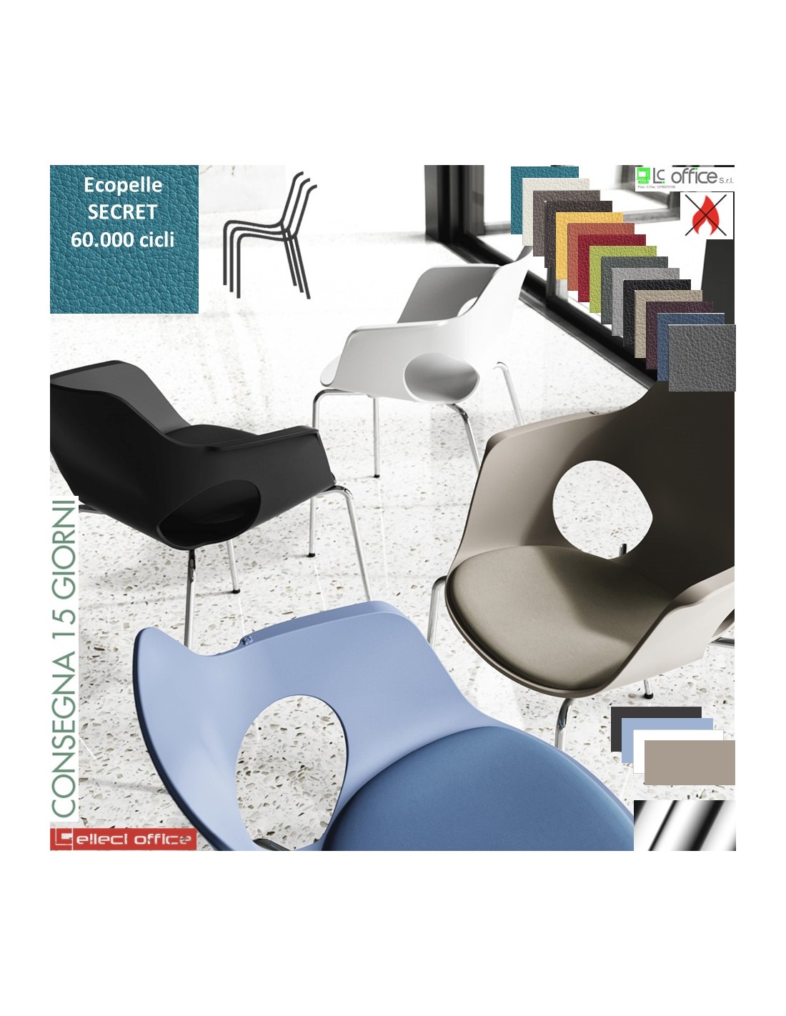 JAMILA Sedia impilabile 4 gambe cromo rivestimento ecopelle SECRET class 1 IM