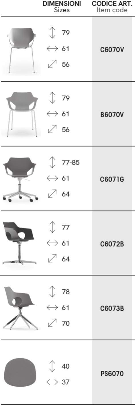 Sedia girevole, scocca in polipropilene, base cromo su ruote, alzata a gas