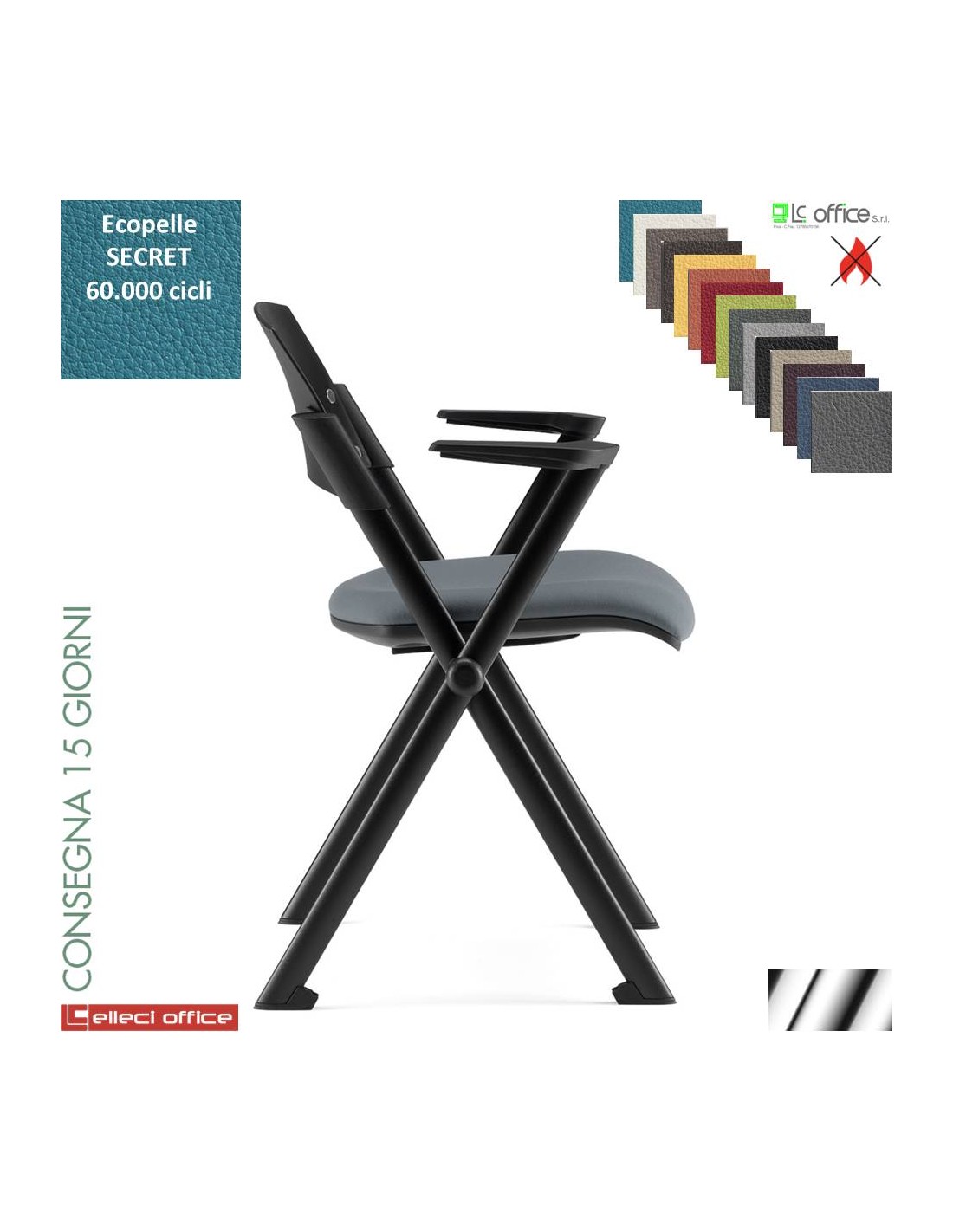 KLIC sedia impilabile sedile ribaltabile e imbotito con braccioli rivestimento ecopelle SECRET class 1 IM