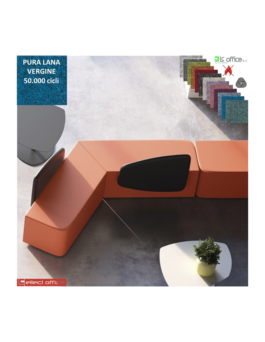 MANTRA schienale triangolare per pouf attesa rivestimento pura Lana vergine Class 1IM
