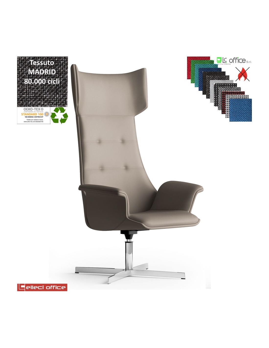 Maxima PLUS CUCITURE A VISTA Poltrona direzionale girevole base 4 razze alluminio tessuto MADRID class 1IM