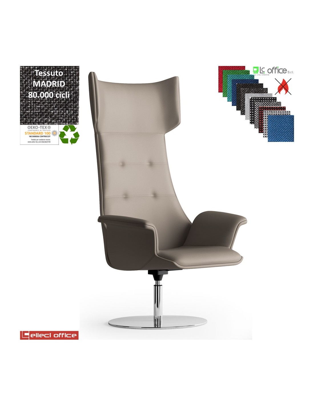 Maxima PLUS CUCITURE A VISTA Poltrona direzionale girevole, base disco Ø600 in acciaio inox tessuto MADRID class 1IM