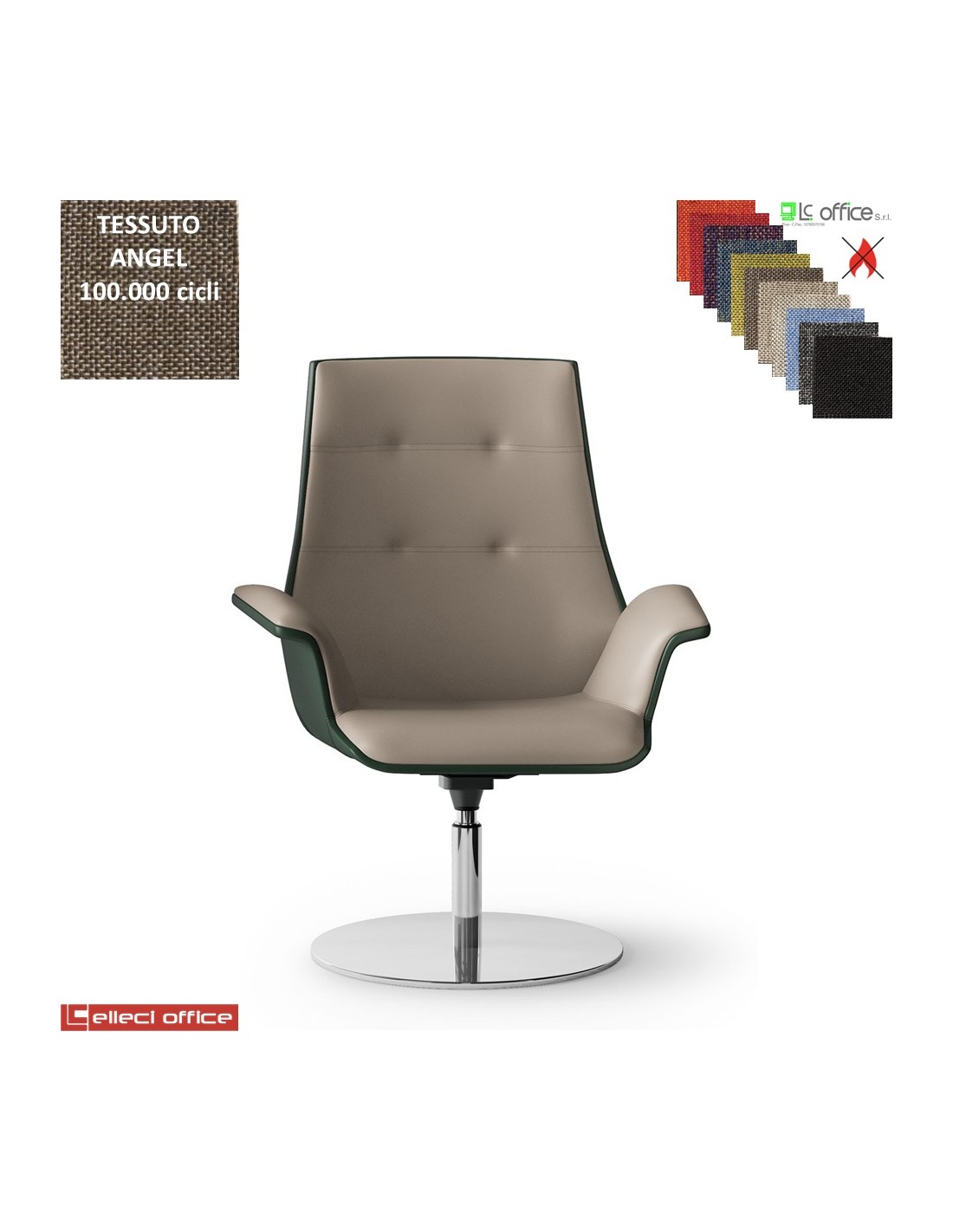 Maxima PLUS CUCITURE A VISTA Poltrona semi-direzionale girevole, base disco Ø600 in acciaio inox tessuto Angel class 1 IM