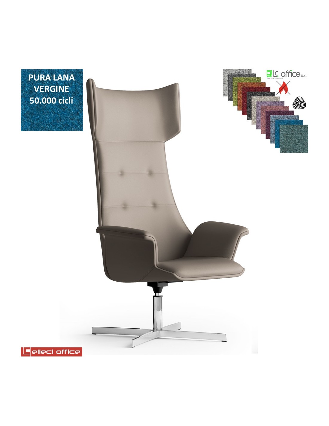 Maxima Plus Poltrona direzionale girevole base 4 razze alluminio in Lana vergine Class 1 IM