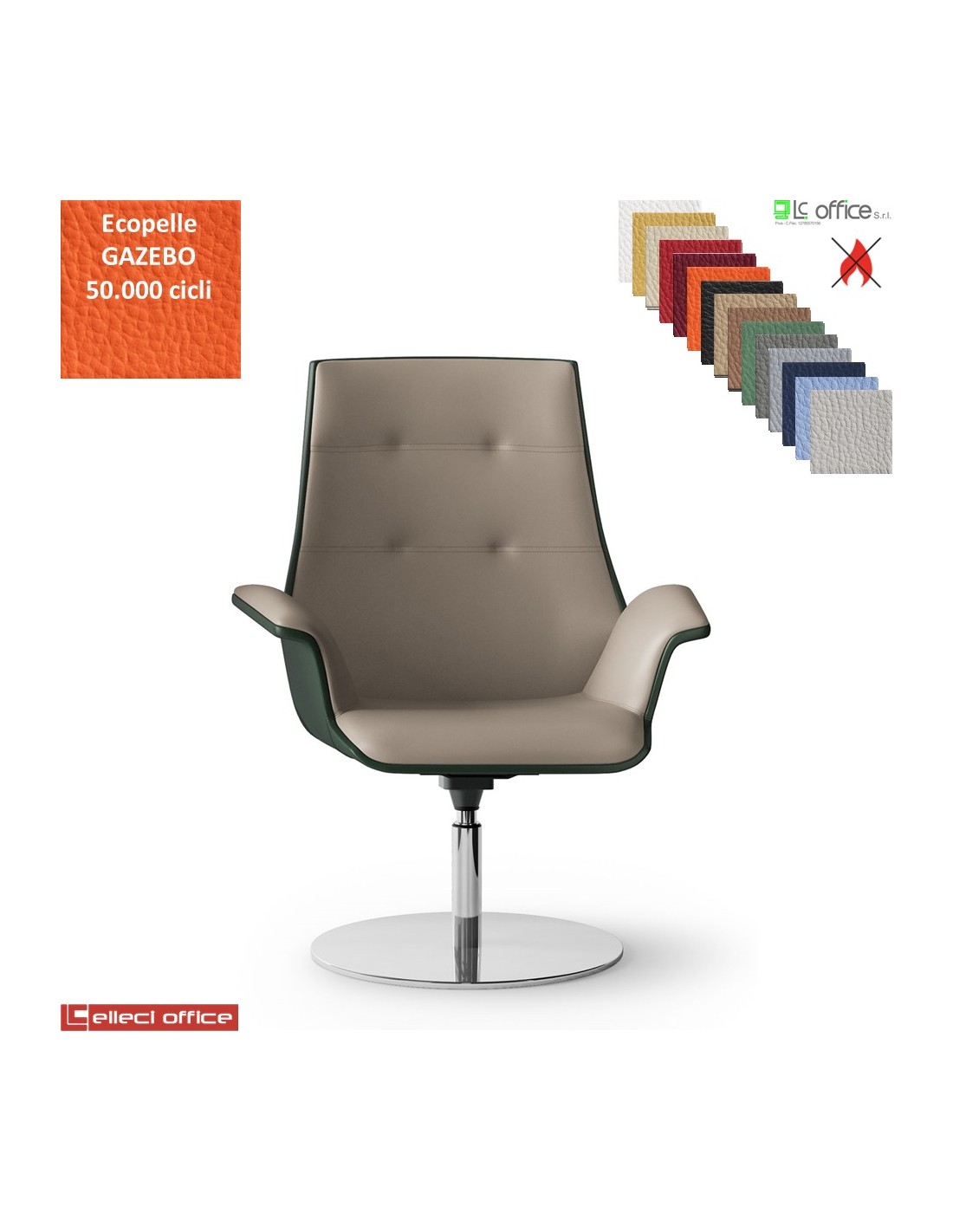 Maxima Plus Poltrona semi-direzionale girevole, base disco Ø600 in acciaio inox ecopelle GAZEBO Class 1IM