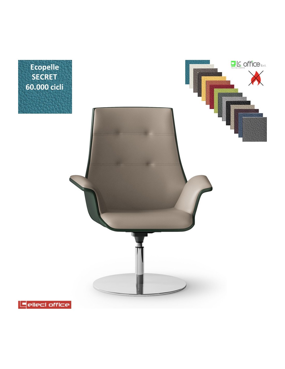 Maxima Plus Poltrona semi-direzionale girevole base disco Ø600 in acciaio inox ecopelle SECRET class 1 IM