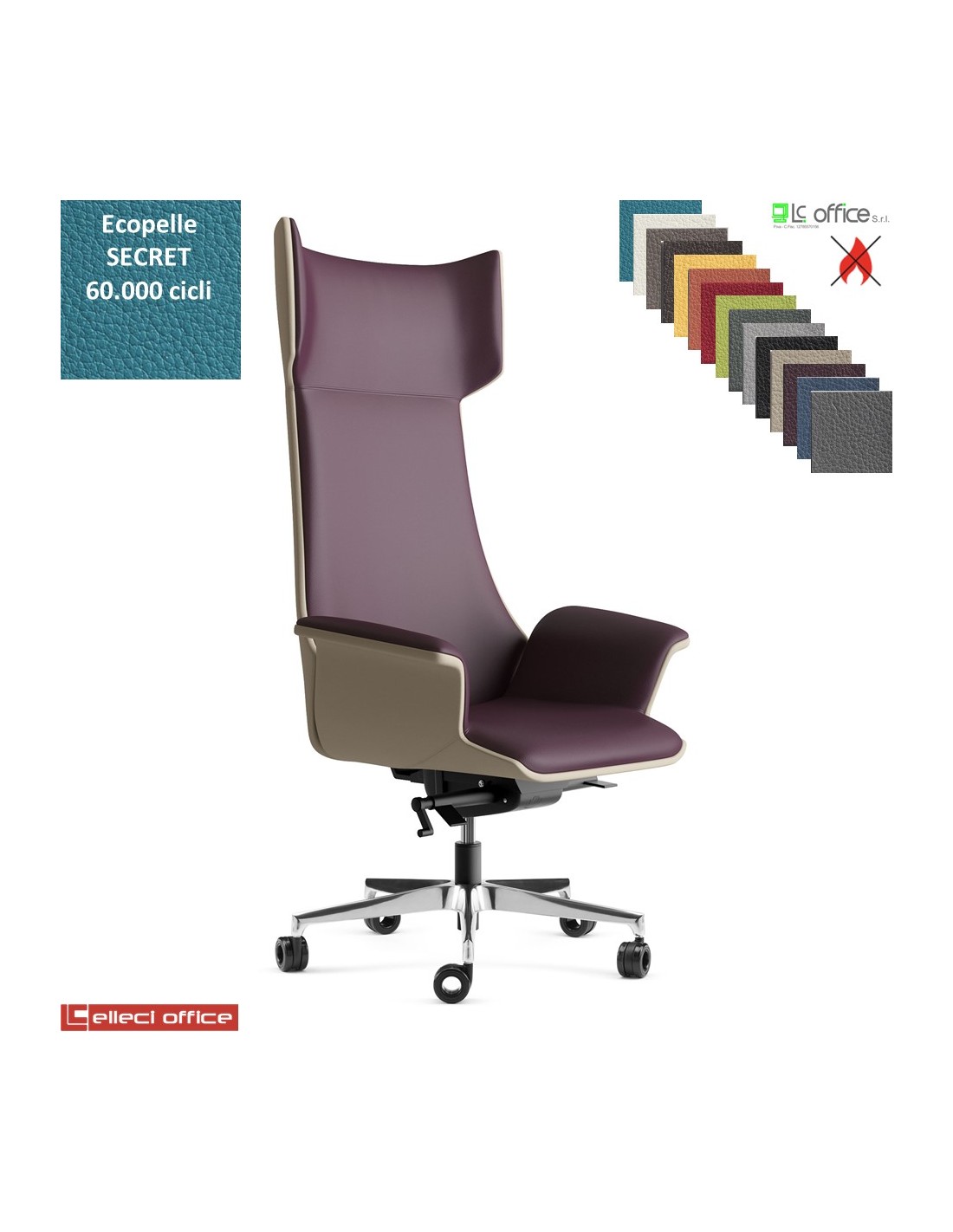 Maxima Poltrona direzionale movimento sincronizzato multiblock reg. laterale base alluminio ecopelle SECRET class 1 IM