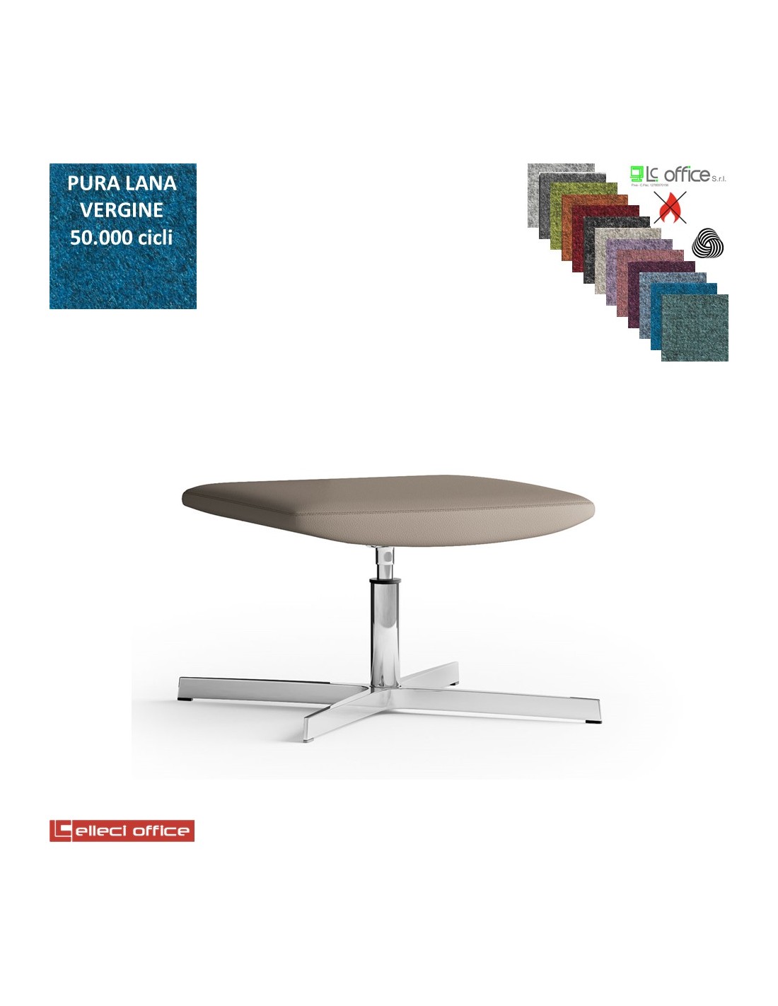 Maxima Pouf girevole, base a 4 razze in alluminio in Lana vergine Class 1 IM
