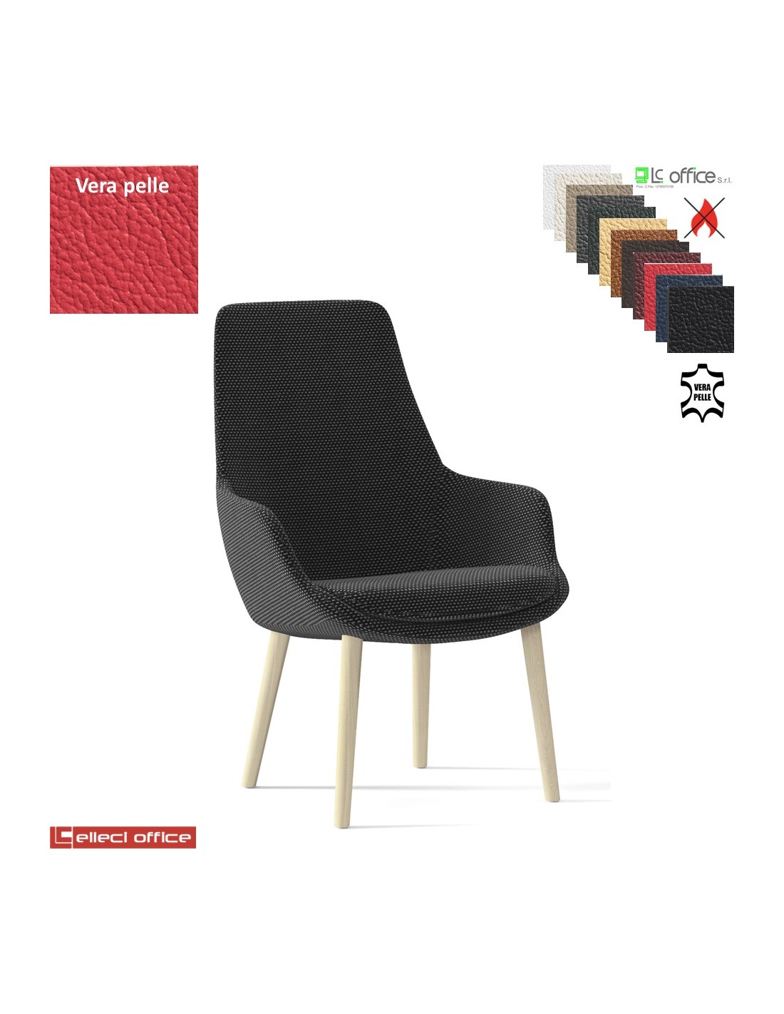 Metropolitan Poltrona semi-direzionale con base a 4 gambe in legno frassino verniciato naturale in VERA PELLE
