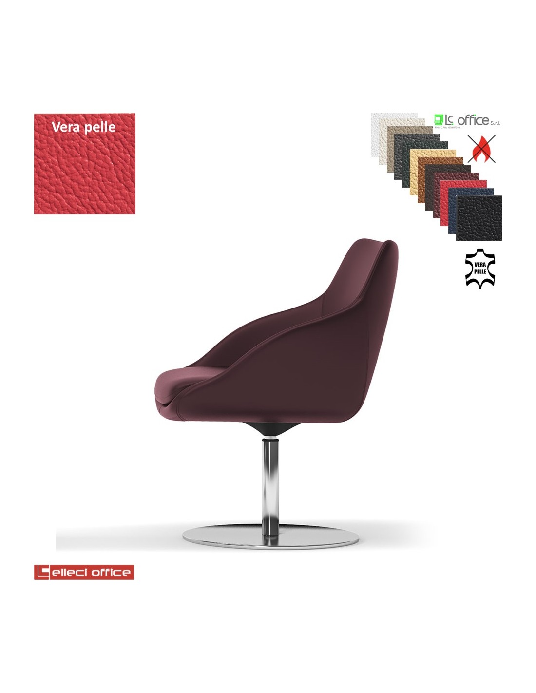 Metropolitan Poltroncina girevole base disco diam.470 in acciaio inox in VERA PELLE