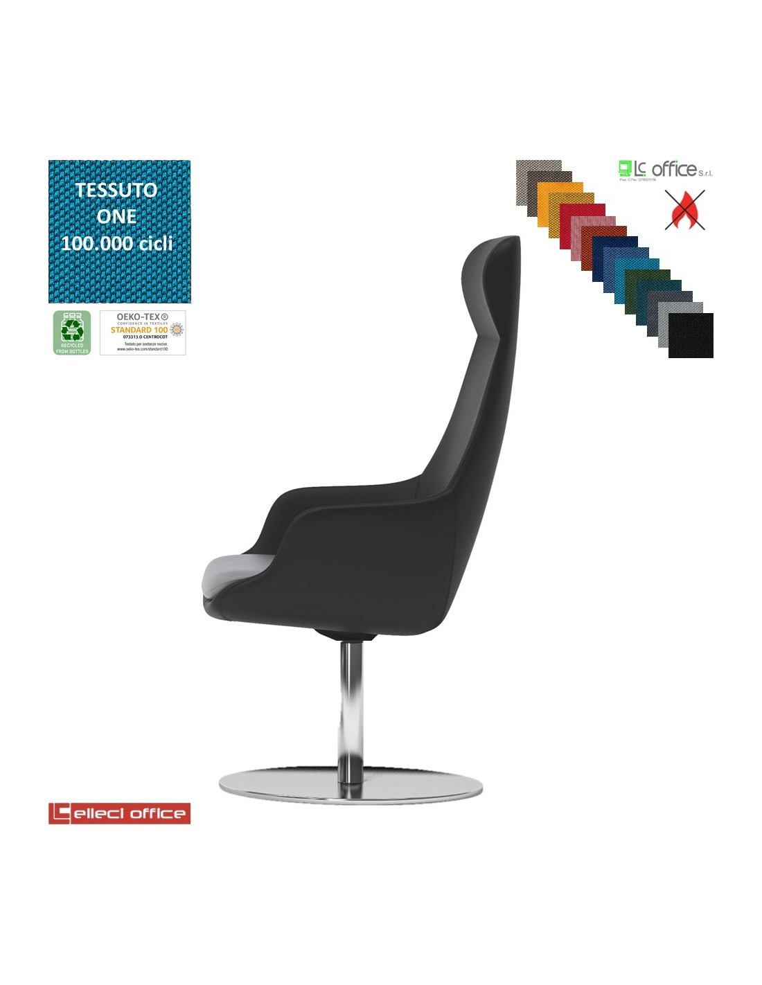 Metropolitan Poltrona direzionale con movimento armonico, base disco diam. 600 in acciaio inox tessuto ONE class 1 IM