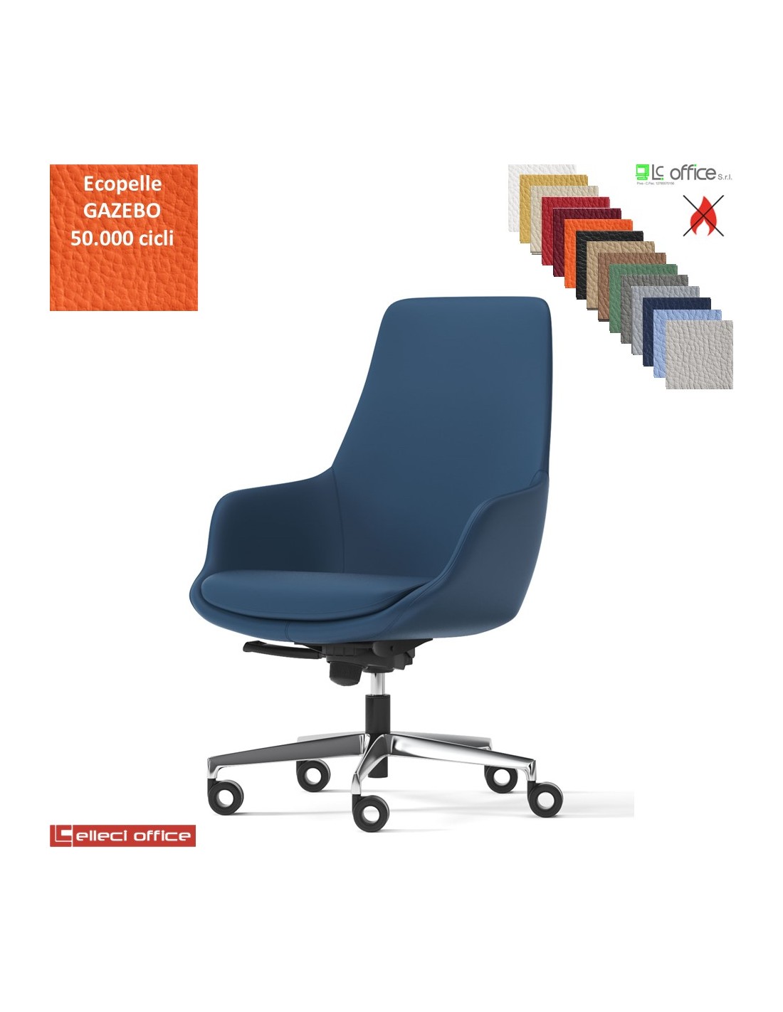 Metropolitan Poltrona semi-direzionale con oscillante multiblock, base alluminio ecopelle GAZEBO Class 1IM