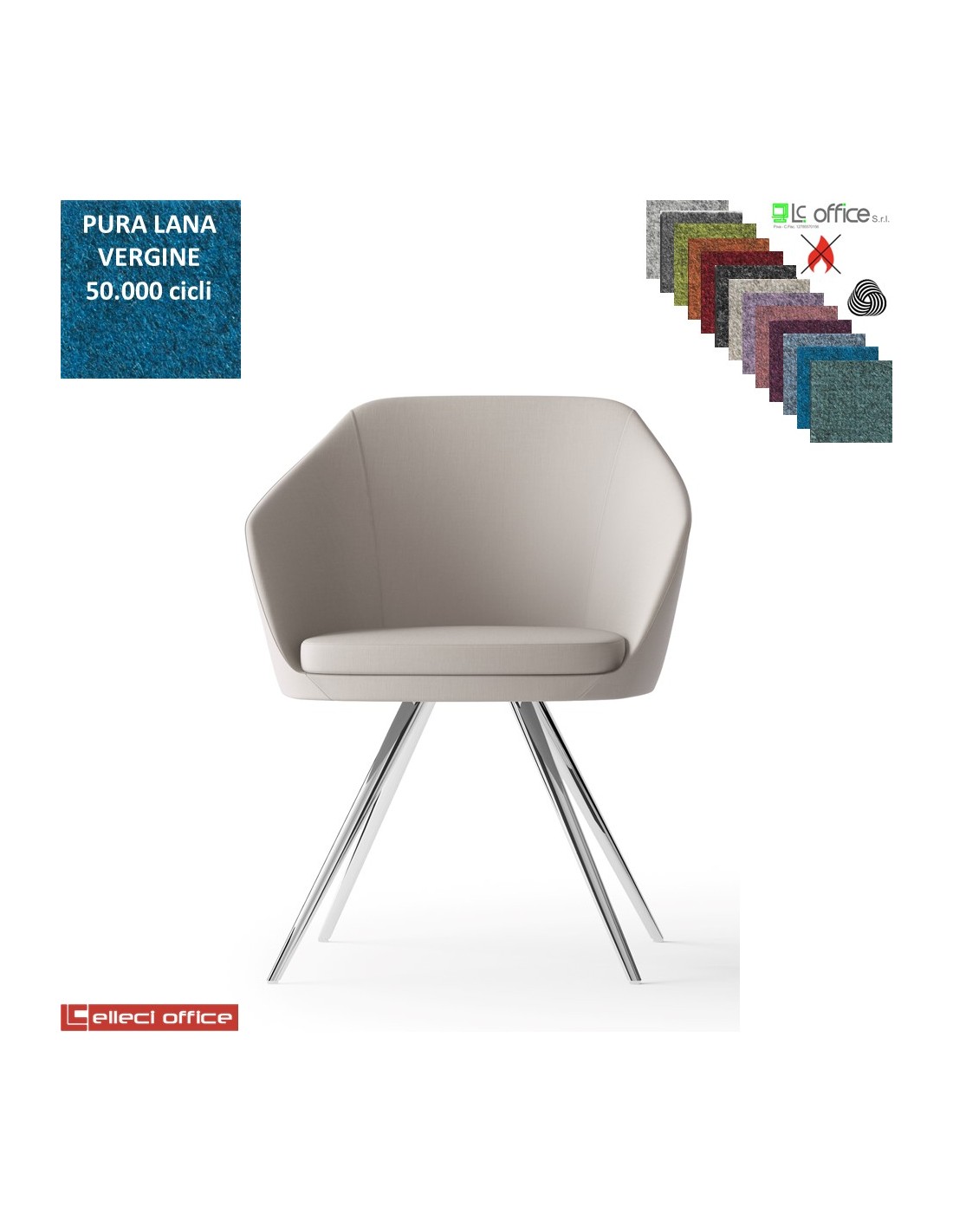 Mimì Poltroncina con base a 4 gambe cromo rivestimento in Lana vergine Class 1 IM