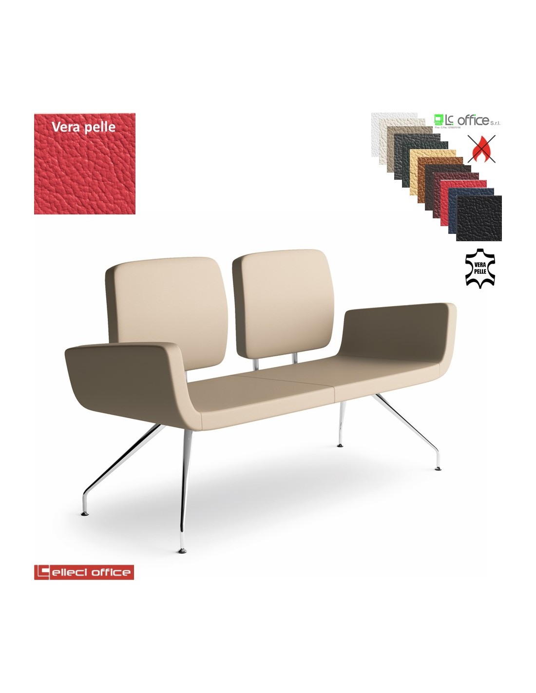 Monet Divano 2 posti base a 4 gambe coniche cromo rivestimento VERA PELLE