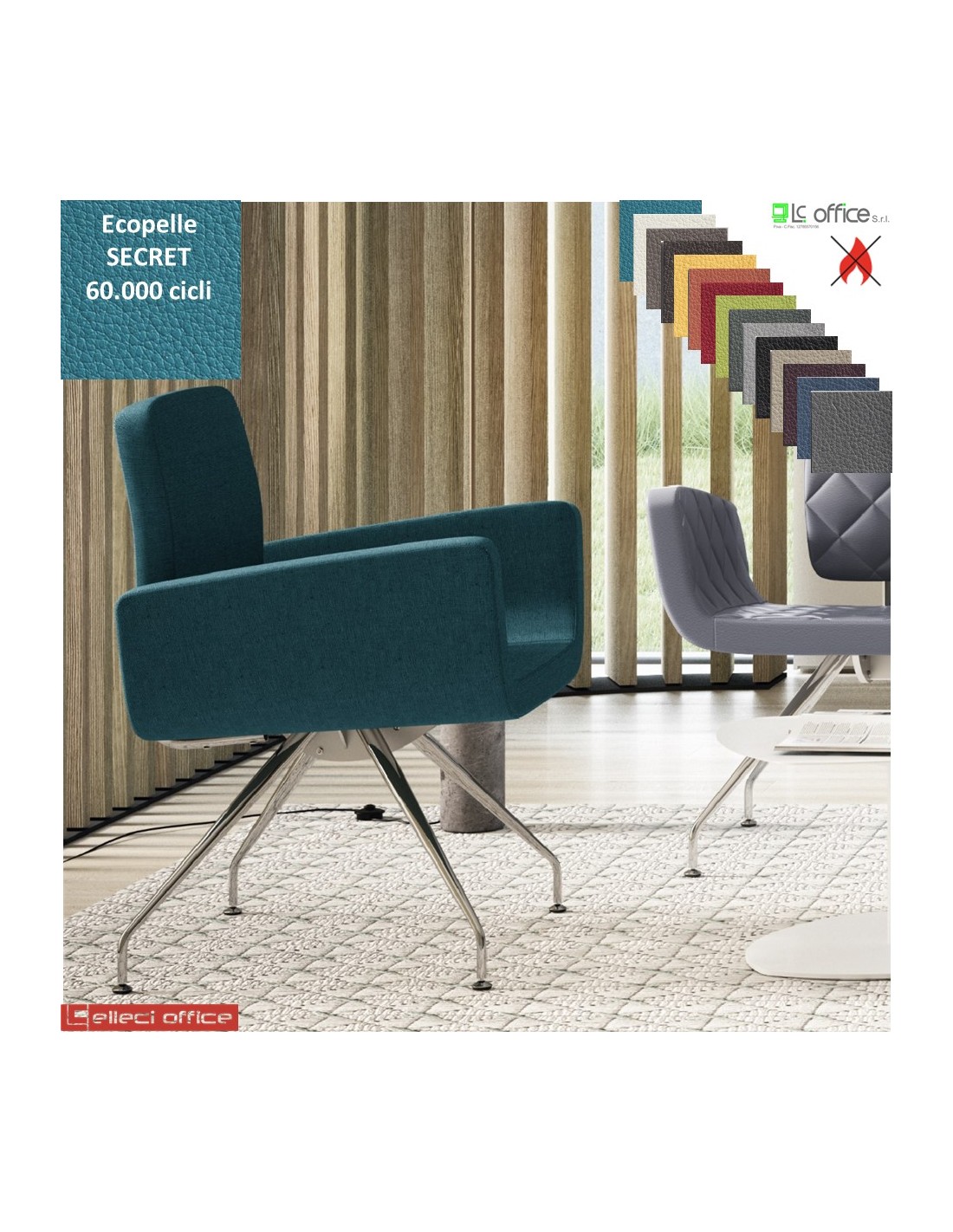 Monet Poltrona base a 4 gambe cromo coniche rivestimenti ecopelle SECRET class 1 IM