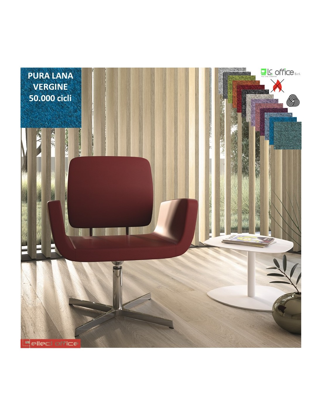 MONET Poltrona girevole base a 4 razze in alluminio rivestimento pura Lana vergine Class 1IM