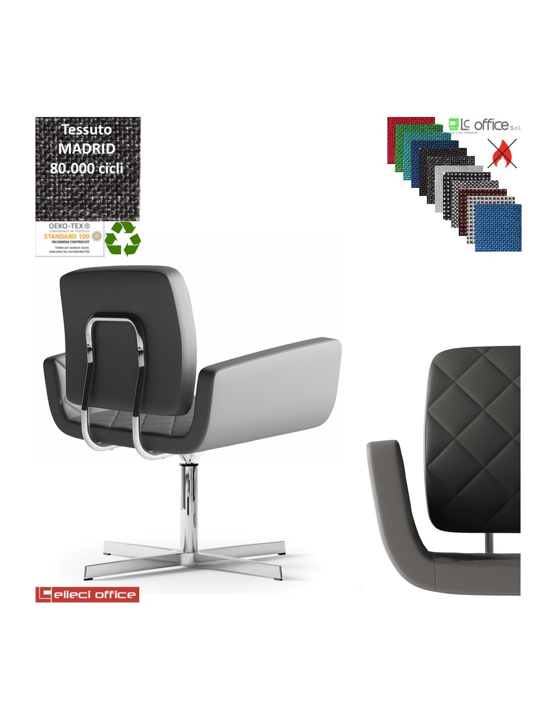 MONET Poltrona girevole base a 4 razze in alluminio rivestimento con cucciture a vista tessuto MADRID class 1IM