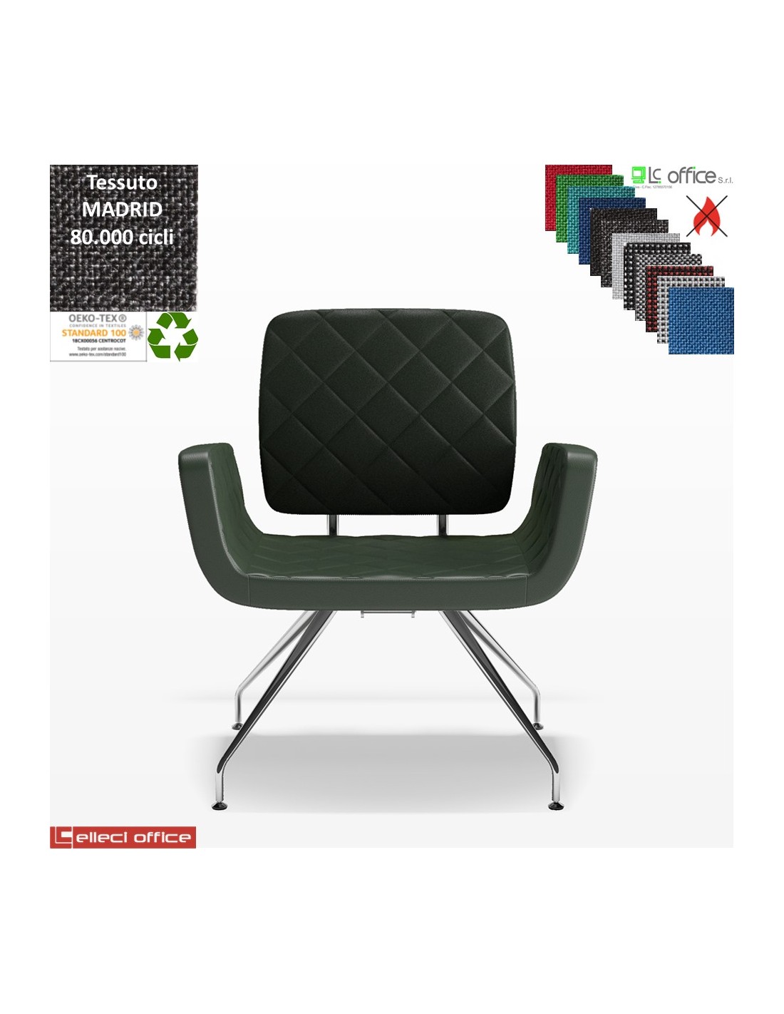 Monet Poltrona base a 4 gambe coniche cromo rivestimento cucciture a vista tessuto MADRID class 1IM