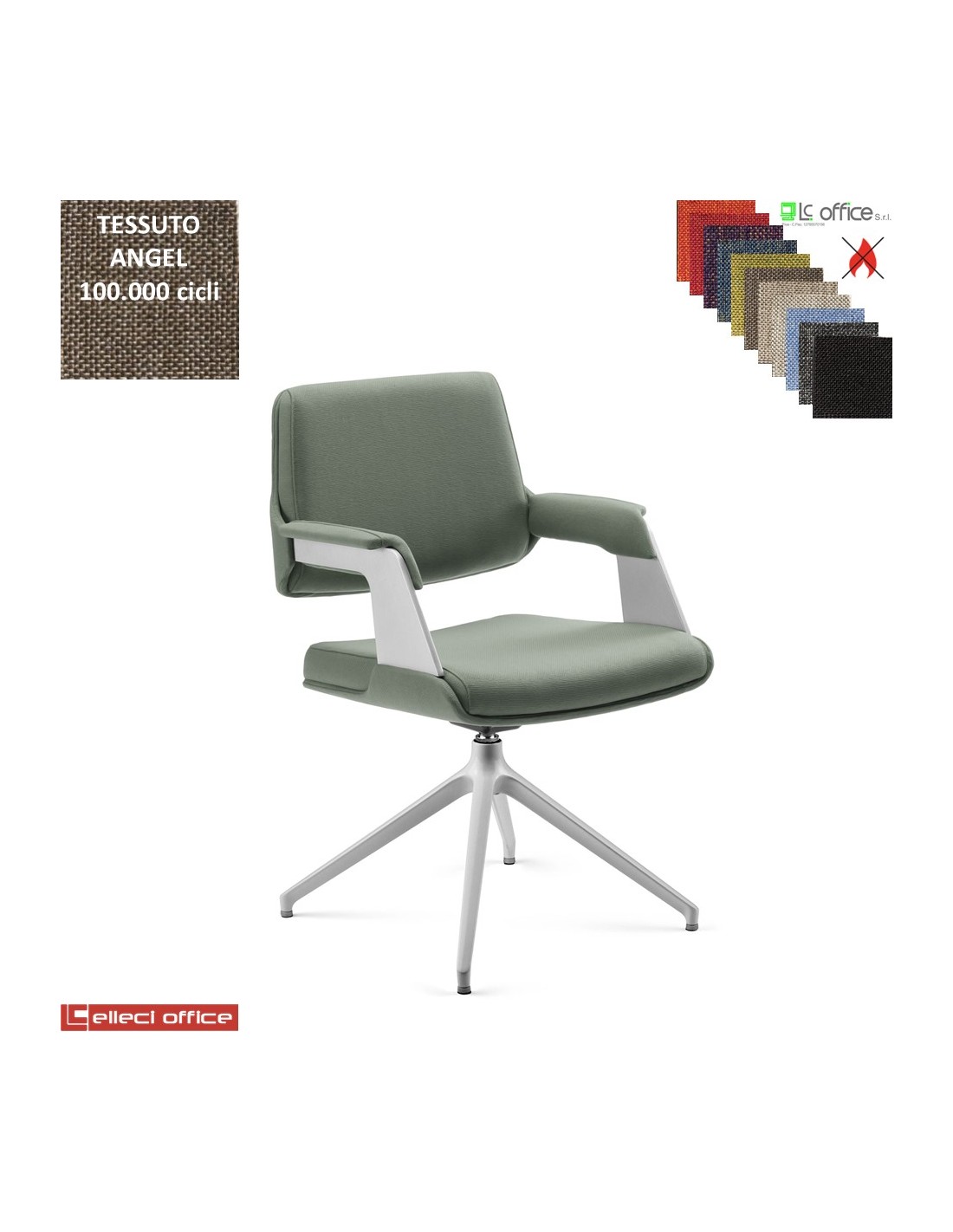 Omnia Poltrona interlocutore girevole, base alluminio piramidale a 4 gambe verniciata grigia tessuto Angel class 1 IM