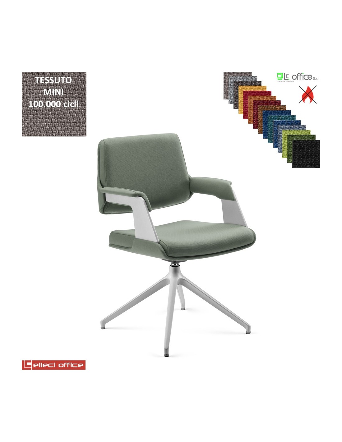 Omnia Poltrona interlocutore girevole base alluminio piramidale 4 gambe verniciata grigia TESSUTO MINI class 1 IM