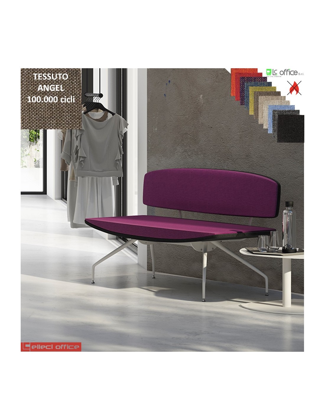 ONDA poltrona 2 posti con base a 4 gambe verniciato bianco e schienale imbottito rivestimenti tessuto Angel class 1 IM