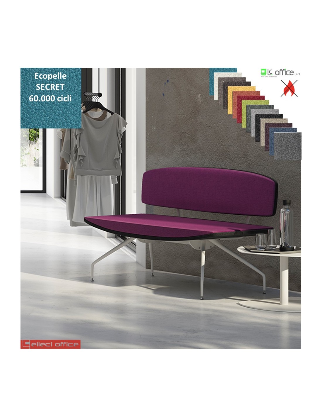 ONDA poltrona 2 posti con base a 4 gambe verniciato bianco e schienale imbottito rivestimenti ecopelle SECRET class 1 IM